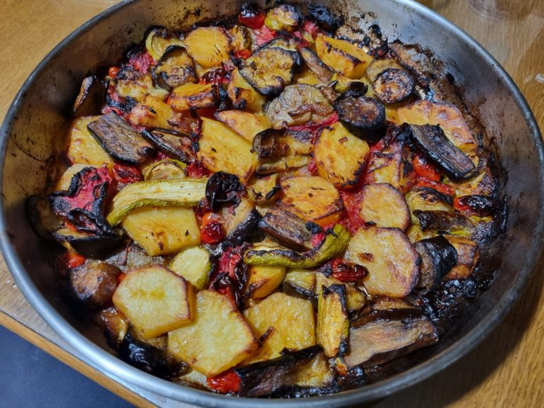 Το μπριάμ τυχαίνει να είναι από τα αγαπημένα μου φαγητά, και να το μαγειρεύω και, εννοείται, να το απολαμβάνω. Στο ταψί όλα τα λαχανικά έχουν τη θέση τους, με όρους ισότητας, με τα χρώματα, τις μυρωδιές και την υφή τους, χωρίς σύγχυση, χωρίς διάκριση. Το λάδι πρέπει να είναι τόσο όσο – πολύ, και επισκιάζει τις γεύσεις, λίγο και μένεις με ένα νερόβραστο άψητο αποτέλεσμα. Υπάρχουν πολλές εναλλακτικές αλλά αποτελούν απλώς παραλλαγές στον ίδιο σκοπό. Η “δημοκρατία” των υλικών εναρμονίζεται πλήρως με το γεγονός ότι αποτελεί το κατά εξοχήν κοινωνικό πιάτο, για φίλους, για την οικογένεια, για νέους επισκέπτες – ή όπως λέει ο συγγραφέας με «συντροφικότητα στο ταψί». Το μαζί, το εμείς, είναι ένα από τα νήματα που διατρέχουν το βιβλίο.